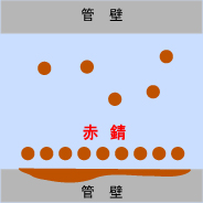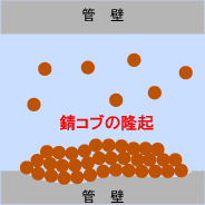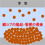 錆コブの隆起→閉塞 管壁の侵食→孔食・漏水 |