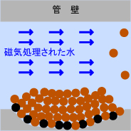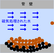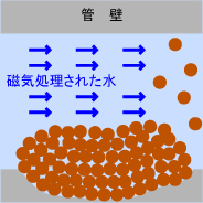 配管内の変化状況(初期) 磁気処理された水が通過・浸透 ※この段階では赤水は止まりません |